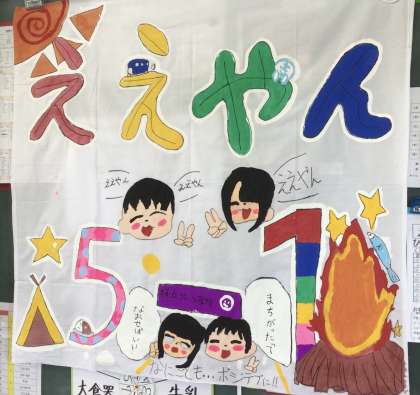 5年生は明日、宿泊学習(キャンプ)に滋賀県のマキノ高原へ出発します。日頃、体験できないことがたくさんあります。何より先生や友達との絆(キズナ)が深まることは間違いありませんよ。忘れることのないたくさんの思い出を作ってきてくださいね。どんな「火の神様」が登場するかな?