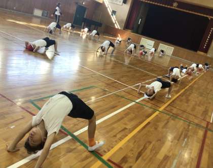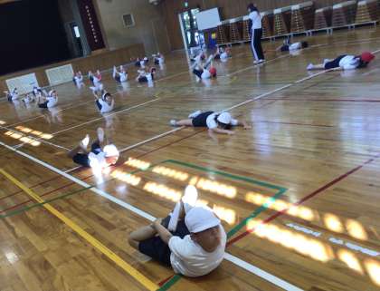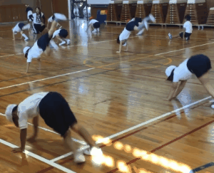 一応、運動会は無事に終了したのですが、6年生の素晴らしい組み立て体操に影響を受けた2年生が、準備体操の中で「一人技」に挑戦していました。思ったよりも簡単にできてしまう子ども達が多いことにびっくりです!