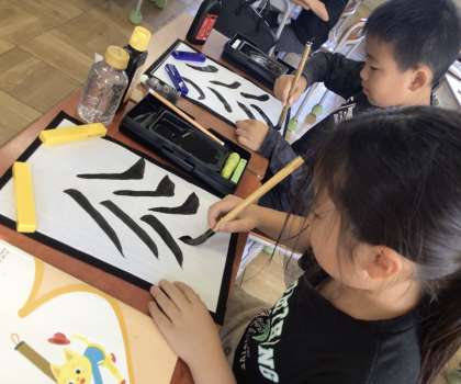 「右はらい」「左はらい」の集中訓練です。この積み重ねが、素晴らしい「一文字」につながってきますね。