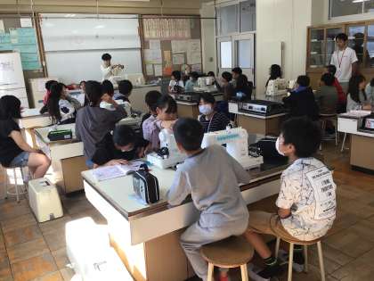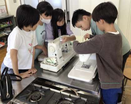 いよいよミシンの使い方が始まりましたね。ほとんどの子ども達が使うのも初めてで、どのような仕組みになっているかを真剣に聞いています。これが不思議となれてくると、ミシンを動かすことに楽しさを覚えてきますよ。