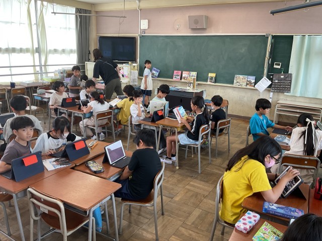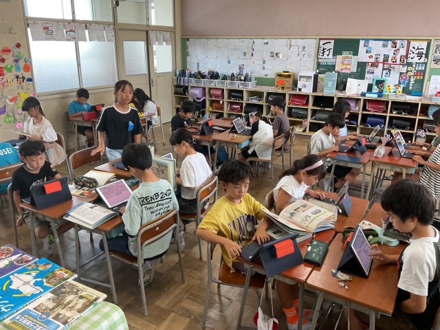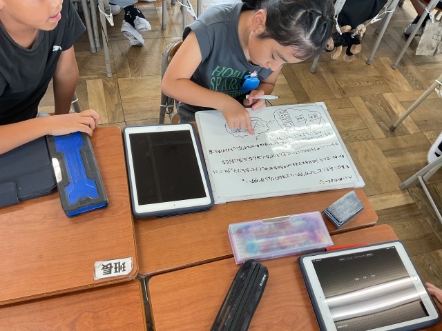 4年生では、平和について各自で本を参考にして調べたり、グループで平和のイメージについてホワイトボードを用いて意見を出し合って考えたりと学習に励んでいました。このような積み重ねを経て6年生では修学旅行で広島に行き自分の目で見て考えるということにつながっていくのですね。