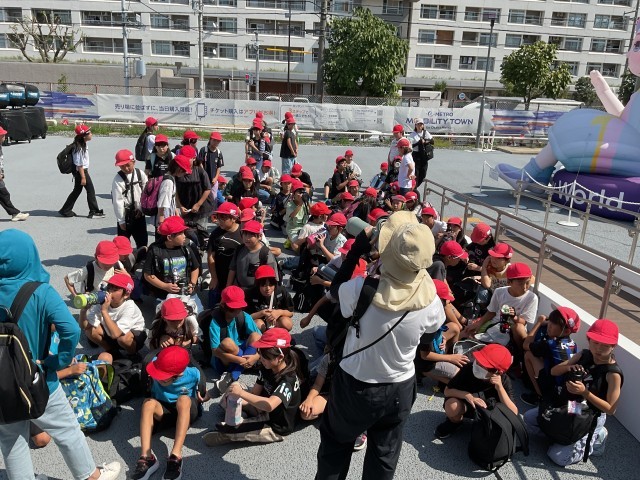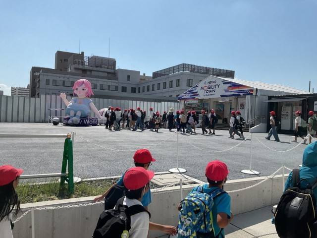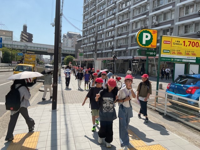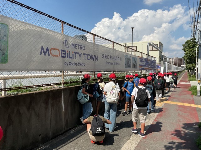 大阪城公園より、森ノ宮駅方面の「モビリティタウン」に向かいました。子どもたちの足にも少しずつ疲労が来ていますが、がんばって歩きました。