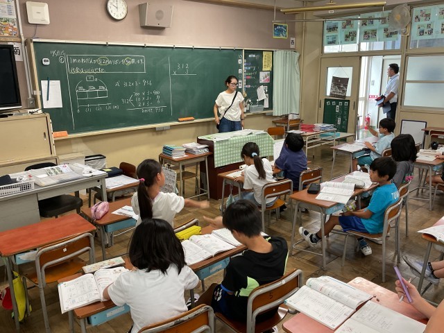 しかし、日本には筆算というテクニックがあります。真剣にお話を聞き、ていねいにノートにまとめています。