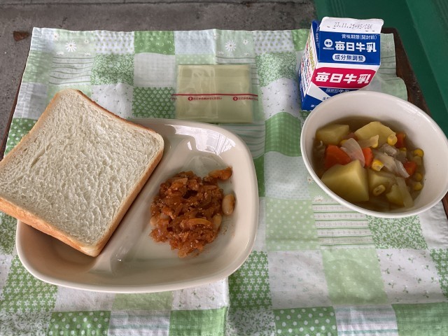 10/7(火)おいしい給食(チリコンカーン) 公開日 2025/10/07 更新日 2025/10/07 おいしい給食 メキシコ生まれ、アメリカ育ちの「チリコンカーン」アメリカの家庭料理の代表といわれています。万博特集の一環で外国の料理がたくさん出ます。調理場の掲示がハロウィン仕様になりました。9つの食材を見つけられますか? いいね(0)