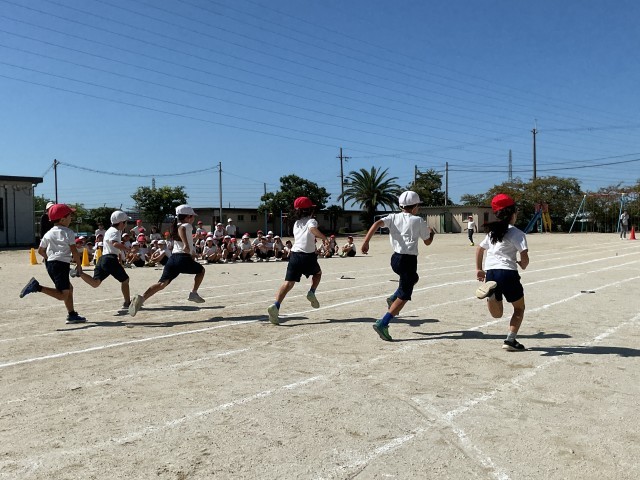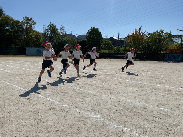 一生懸命走っている姿に感銘を受けました。同時に、行儀良く並んだ状態で大きな声で友達を応援している姿にも感心させられました。すごいなぁ、2年生!