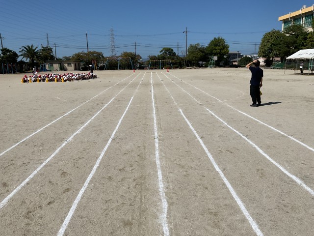 地域の方がコースのライン引きをしてくださっています。
