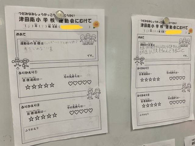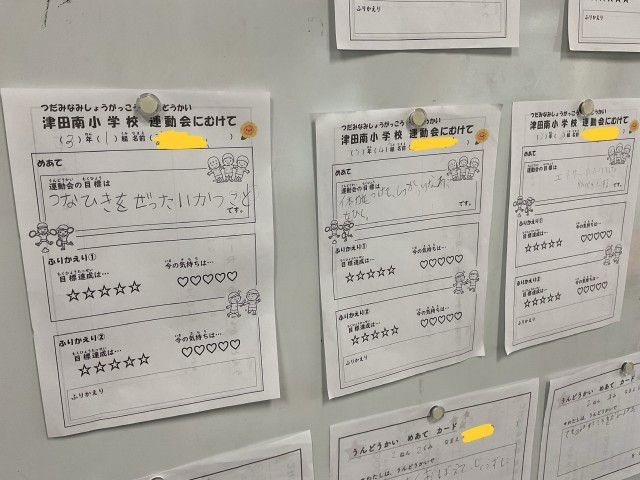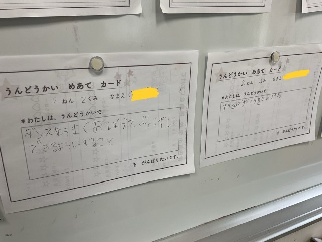 そして、ふとホワイトボードを見ると、【運動会の目標】が貼ってありました。