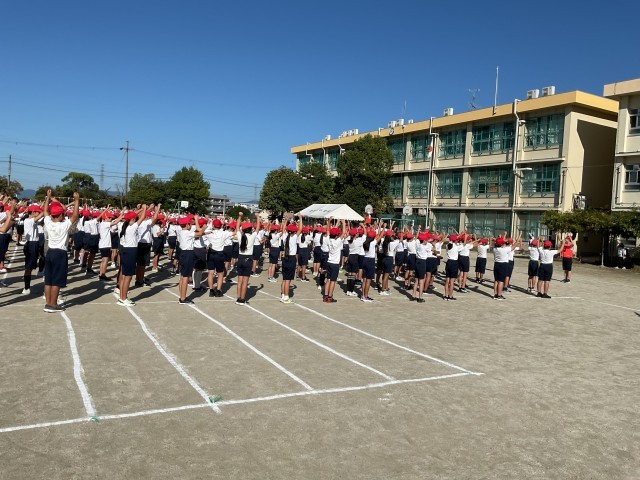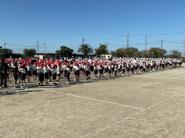 素晴らしい天気のもと、全学年揃っての全体練習を実施することができました。開閉会式の練習や児童会種目「大玉おくり」の練習を頑張りました。この調子で土曜日も天候に恵まれることを願いましょう!