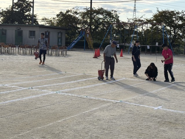 10/24(金)放課後の先生たち(最後の仕上げ) 公開日 2025/10/24 更新日 2025/10/24 学校の様子 6年生のがんばりを引き継いで、先生たちが最後の仕上げをしました。地域の方もライン引きにお手伝いいただきました。大変まっすぐで、力強いラインです。ご協力ありがとうございました。 +1 いいね(0)