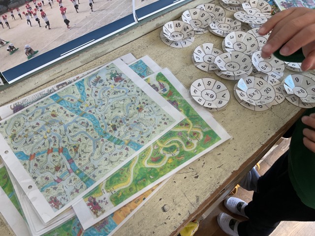 10/28(火)2年生 かけ算を身につけるために 公開日 2025/10/28 更新日 2025/10/28 2年生 九九に取り組んでる2年生の教室の後ろにはいろいろな小道具が置いています。お花のようなものは、花びらをめくるとかけ算の答えが出てきます。九九を覚えるための迷路もあります。正しい道を進んでいかないとボスにたどり着けません。「これ、給食当番でない子が待っている間やるねん!」と教えてくれました。 +2 いいね(0)