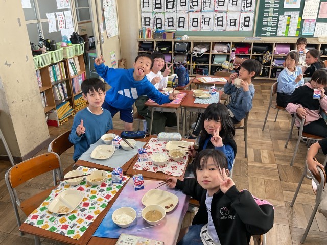10/30(木)3年生の教室に行きました! 公開日 2025/10/30 更新日 2025/10/30 おいしい給食 今日のだんごじるには、しらたま団子が入っていました。しっかり噛んで食べられていました。栄養教諭もきちんと噛んで食べているかの確認で教室に来ていました。ししゃもは「ししゃもじゃんけん」が行われるくらい大人気でした! +3 いいね(0)