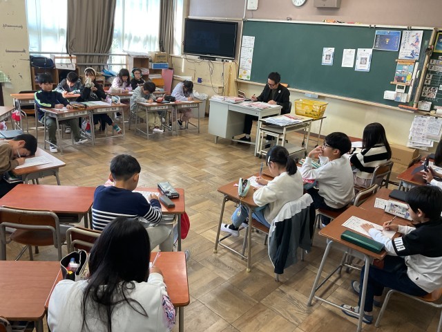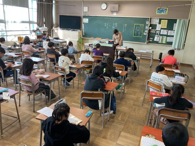 3年生の教室では朝学習の時間に漢字学習に励んでいました。連休明けですが、気持ちを切り替えて学習に向かう態度が素晴らしかったです。朝学習が終わったクラスは朝の会で、今日の予定等を担任の先生と確認していました。