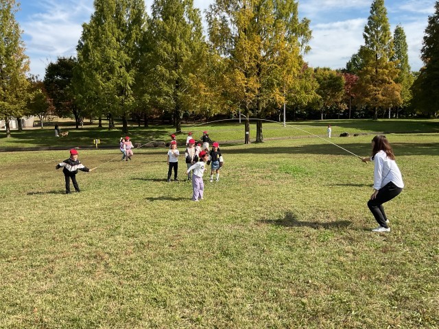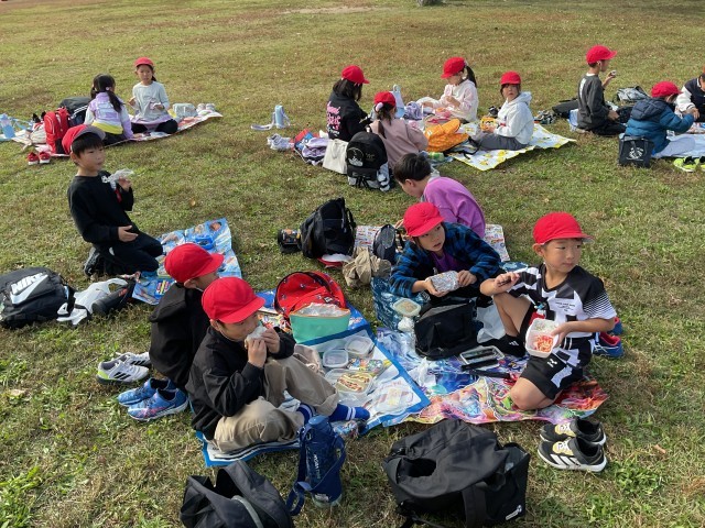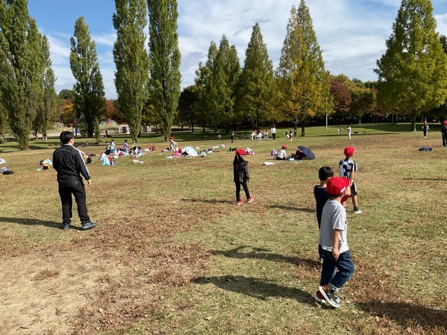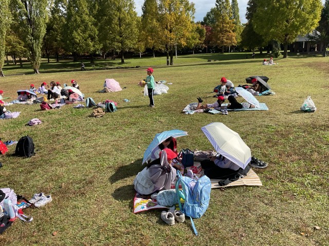 11/6(木)1年生 校外学習に行きました② 公開日 2025/11/06 更新日 2025/11/06 1年生 さらに公園内を移動して秋探し第2弾。大変たくさんのドングリを拾いました。お腹が減ったので、少し早くお弁当です。この頃から日差しが強くなり、日傘で休む子もいました。先生が持ってきたボールや大なわ、ドッジビーで遊ぶ子、鬼ごっこを楽しむ子など様々でした。 +6 いいね(0)