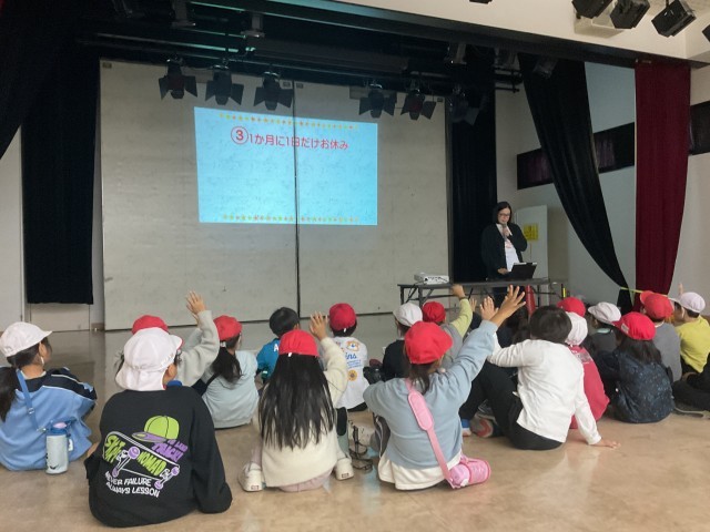 「お休みはなんと1ヶ月で1日だけ」などセンターに関することをクイズ形式で教えてくださいました。
