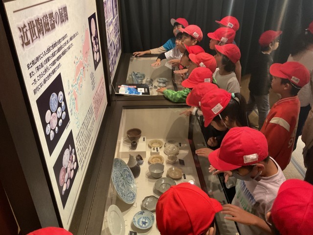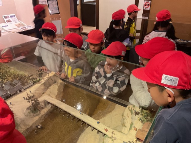 3つのグループに分かれて見学をしました。くらわんか舟に関する展示や昔の道具を見て、一生懸命メモを取っていました。