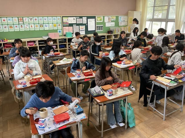 11/13(木)おいしい中学校給食 6年生が体験しました。 公開日 2025/11/13 更新日 2025/11/13 おいしい給食 通学校進学に向けて中学校給食の体験をしました。お弁当箱に入ってくるので、食器によそう必要がありません。味は、「おいしい!」「小学校のほうがいい!」など意見はさまざま。今日の感想をお家の人に話して、4月からの参考にしてくださいね。 +5 いいね(0)
