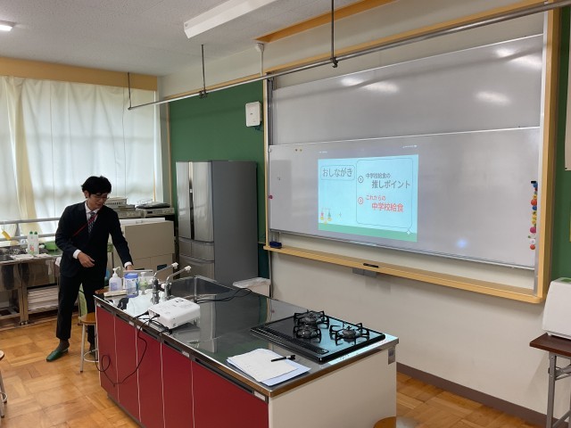本校栄養教諭からのお話の後に、中学校でも勤務経験があり現在は桜丘北小学校の栄養教諭の小西先生から中学校給食の推しポイントとこれからについてお話しいただきました。