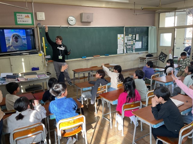 児童朝会で紹介しましたがダニエル先生が教室に登場です。