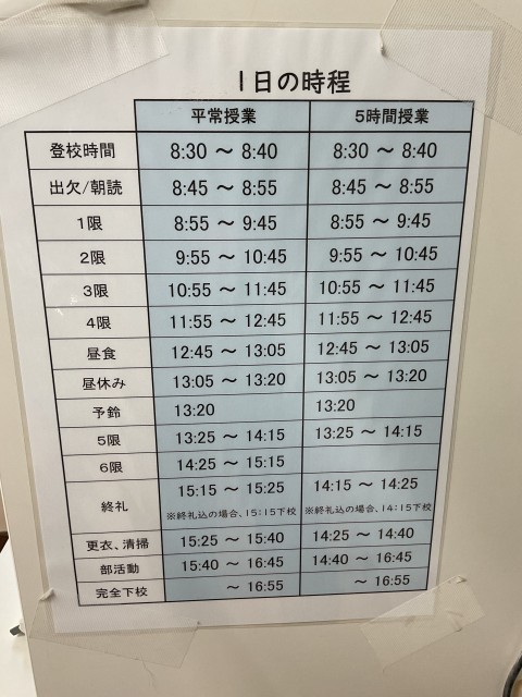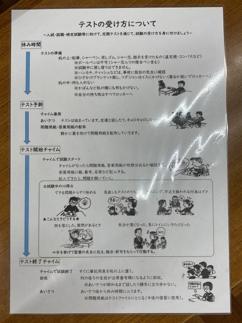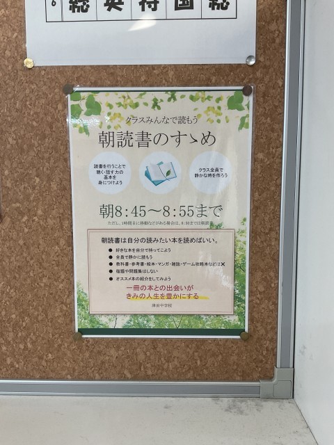 教室にお邪魔したので、【校時表】や【読書の取り組み】、【テストの受け方】についての掲示を撮影させてもらいました。