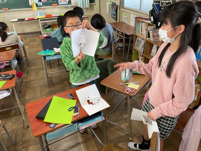 11/28(金)4年生 もう少しでクリスマス! 公開日 2025/11/28 更新日 2025/11/28 4年生 クリスマスまで1ヶ月を切りました。4年生がクリスマスカードを作っていました。クリスマスツリーやサンタさんなどの力作が多かったので、子供の写真は少なめで作品の写真ばかりを写していましました。これから飾り付けをしていくようですので、持ち帰りはしばらく先になりそうです。 +3 いいね(0)