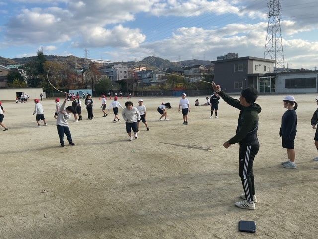11/28(金)6年生 体育で大盛り上がり! 公開日 2025/11/28 更新日 2025/11/28 6年生 職員室で仕事していると、大きな歓声が聞こえます。何事かと外へ出ると、6年生が大縄跳びをしていました。「全員跳び」や「8の字跳び」に一喜一憂。今のクラス、今の仲間で協力して取り組む4ヶ月くらいです。しっかり楽しんでください! +1 いいね(0)