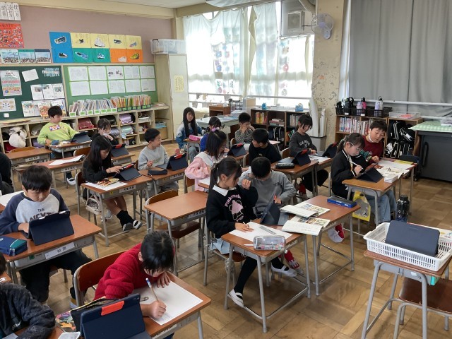 国語の学習のまとめとして、新聞の作成をしていました。