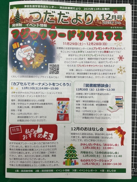 12/1(月)2年生 津田だより12月号に掲載されました!