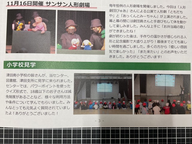 11月7日(金)に2年生が各所へ学習に行った様子が「津田だより12月号」に掲載されていました。
