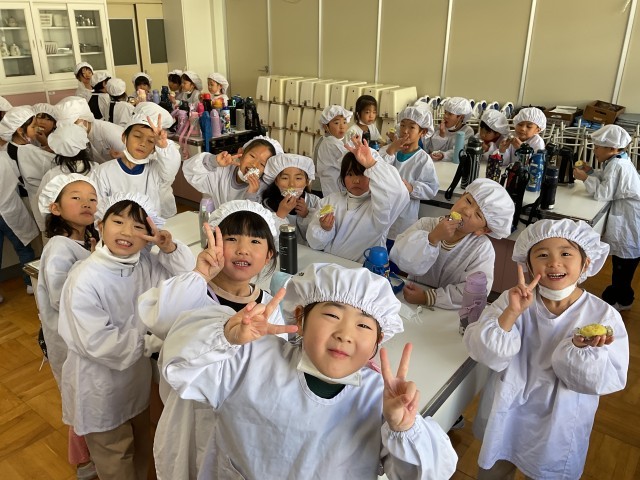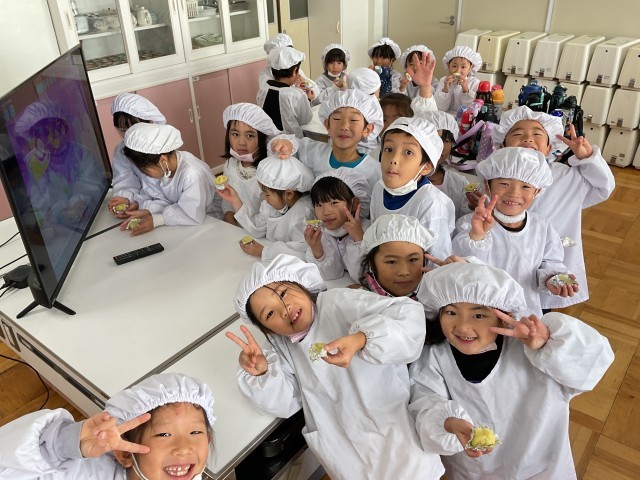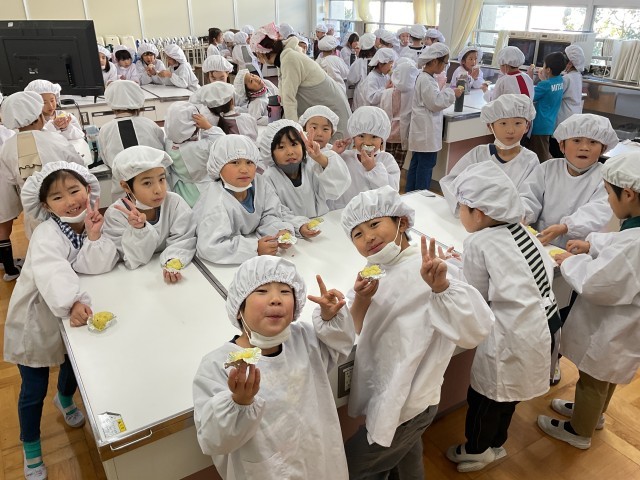 12/5(金)1年生 おいももみもみスイートポテト② 公開日 2025/12/05 更新日 2025/12/05 1年生 スイートポテトが焼き上がりました。いただきます!!もりもり食べていました。この後すぐに給食ですが、そちらもしっかり食べてくださいね。 +1 いいね(0)