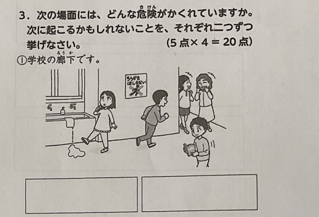 12/10(水)5年生 ケガの防止についてテストをしています 公開日 2025/12/10 更新日 2025/12/10 5年生 校内や校外での危険について予測するテストをしていました。危険箇所に矢印をつけたり、長い文章で回答したり、ていねいに取り組んでいる子がたくさんいました。改めてテストで確認すると答えることができますが、なかなか普段の生活でその通り行動できるとは限りません。しかし、真剣に考え身につけたことは、行動につながるはずです。 いいね(0)