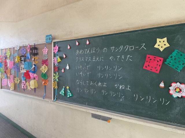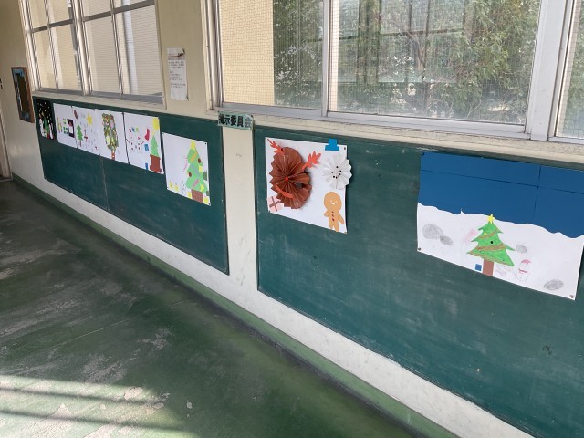 12月の季節にふさわしい掲示物が廊下の至る所に飾られています。素晴らしい環境を作っていただき、ありがとうございます。学校の自慢の一つです。