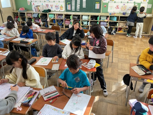 校区探検や津田図書館・津田支所などへの見学、生き物や植物の観察など2学期に取り組んだ振り返りをそれぞれでまとめて、ファイリングしていました。