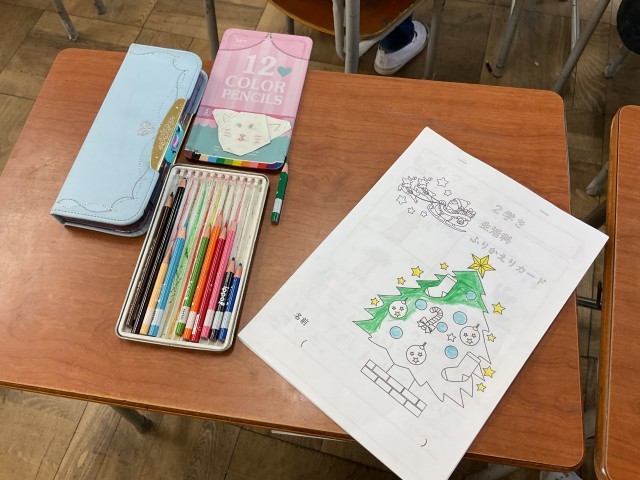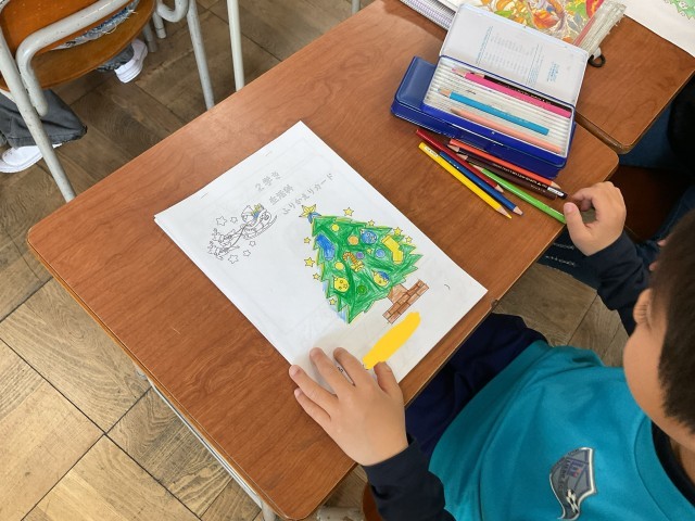 表紙のクリスマスツリーをきれいに色塗りして持ち帰ると思います。2学期のがんばりの成果ですので、ぜひご家庭でいっしょに見てあげてください。