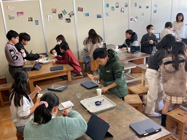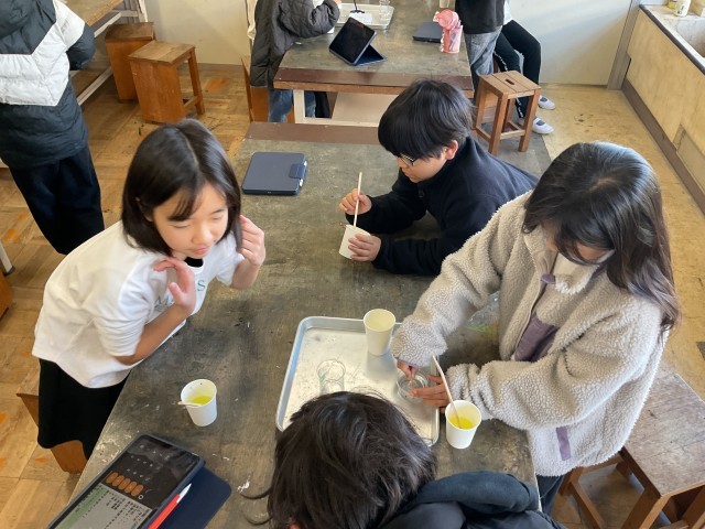 理科の学習のお楽しみとして「スライムづくり」をしていました。