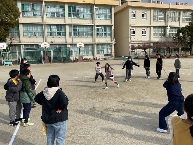 12/22(月)5年生 学年で大なわとドッジビー 公開日 2025/12/22 更新日 2025/12/22 5年生 PTA学年活動でも取り組んだ大なわは、エンジョイチームと本気チームに分かれて取り組んでいました。本気チームは51回連続で跳んだのが、最高記録でした。そのチームの普段の最高は90回と話してくれました。すごいなぁ!後半は、ドッジビー。田んぼの【田】の形のコートで、どこのチームを狙ってもOKというルールで取り組みました。前後左右からのドッジビーに対応するのは大変そうでした。 +6 いいね(0)