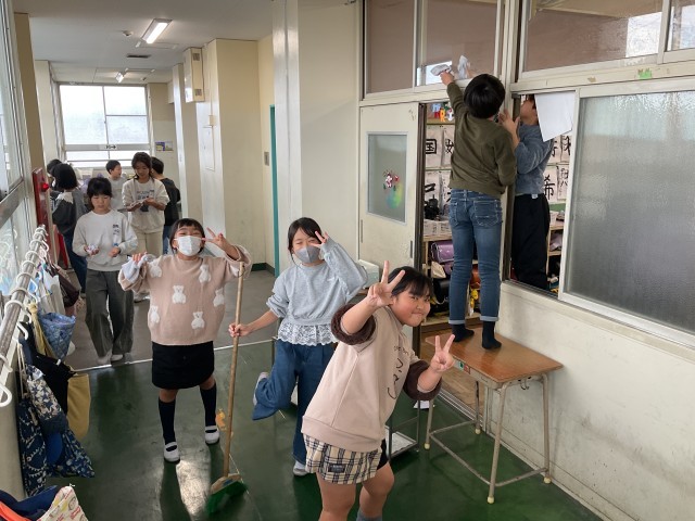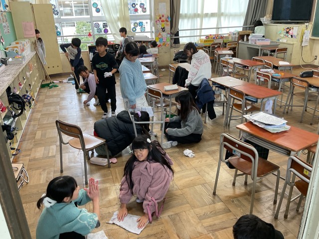 4年生全クラスで明日の大そうじに向けて予備清掃でしょうか。