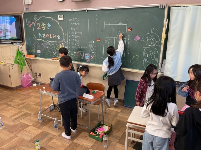 2年生のクラスではお楽しみ会でグループごとに様々なお店を開いて楽しんでいました。宝探しやボーリング、魚釣りなど自分たちで考えて準備をして本番を楽しんでいる様子でした。お客さんもたくさんきてくれていましたね。