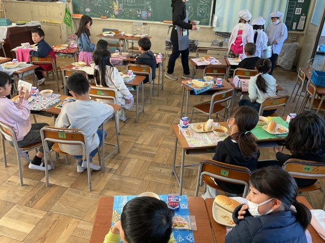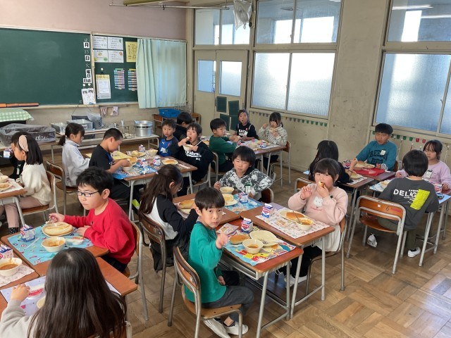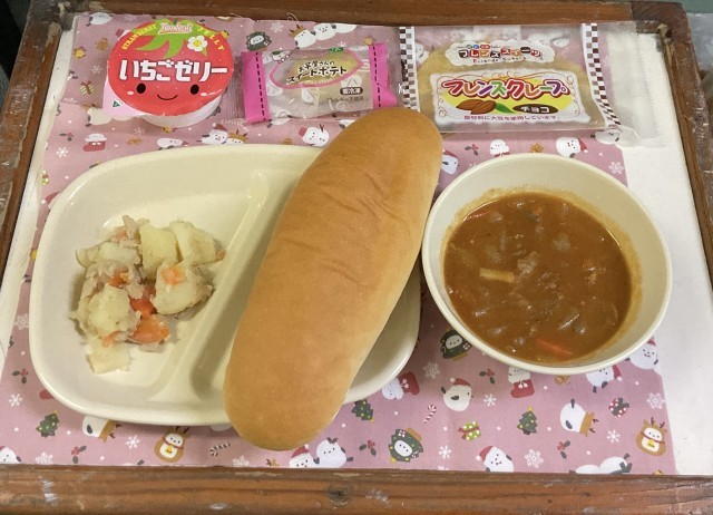 今日は、今年最後の給食となります。今年も美味しい給食を作って頂きありがとうございました。今日の給食は自分で選ぶことができるセレクトデザートが付いていました。いちごゼリーとスイートポテト、チョコクレープの3つから一つを選ぶことができます。みなさんはどれを選んだかな?ちなみに津田南小学校の一番人気はチョコクレープでした。