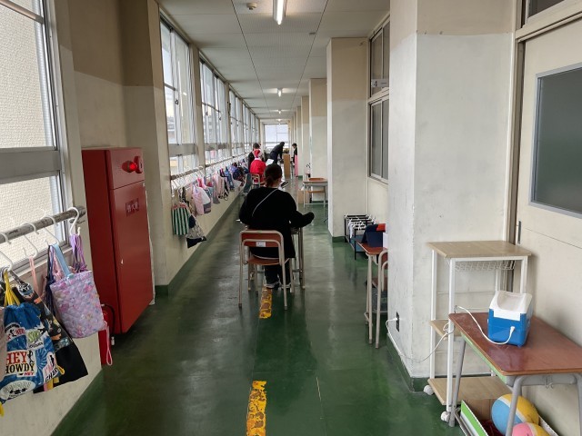 廊下でじっくりとあゆみを渡しているクラスが多かったです。教室の中で待っている人も上手に待てていてすばらしい!2学期の写真のスライドショーを見ているクラスもありました。