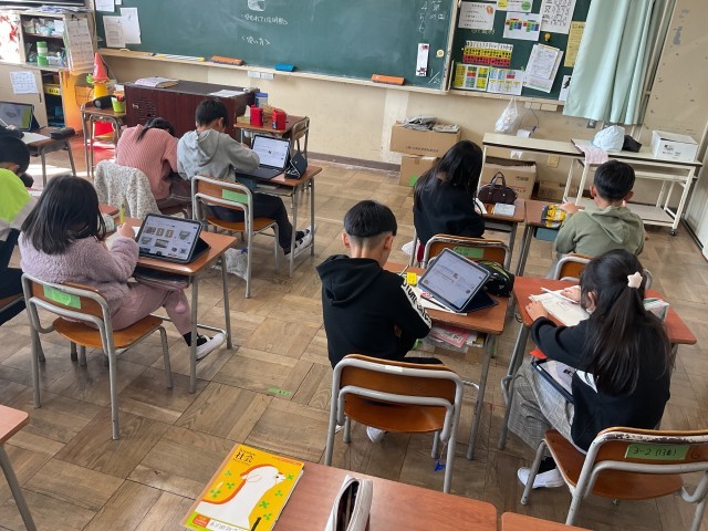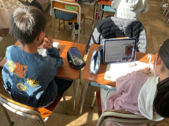 社会科の学習で昔の道具を調べています。今とは形や大きさが異なる様々な道具を自分で選んで深掘りしていました。黙々と集中して調べ学習に取り組む姿はさすが3年生ですね!