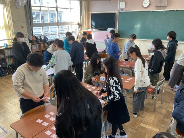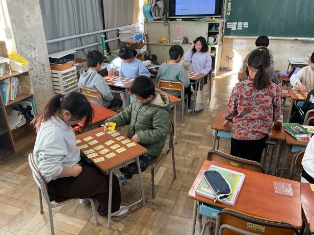 1/28(水)4年生 百人一首に取り組んでいます 公開日 2026/01/28 更新日 2026/01/28 4年生 2学期から続いている取り組みです。先生が読札を詠むクラスやCDで読札を流し先生が対戦をしっかり確認するクラス。立って取り組むクラスや座って頭の上に手を置いて取り組むクラス。それぞれのスタイルで百人一首に取り組んでいます。 +1 いいね(0)
