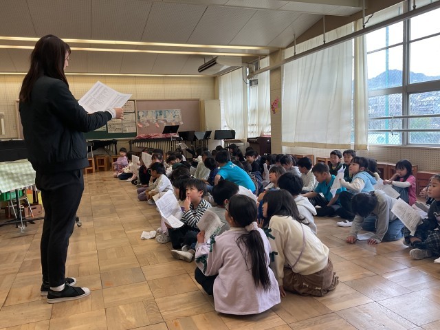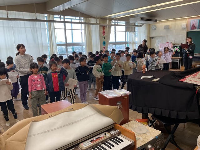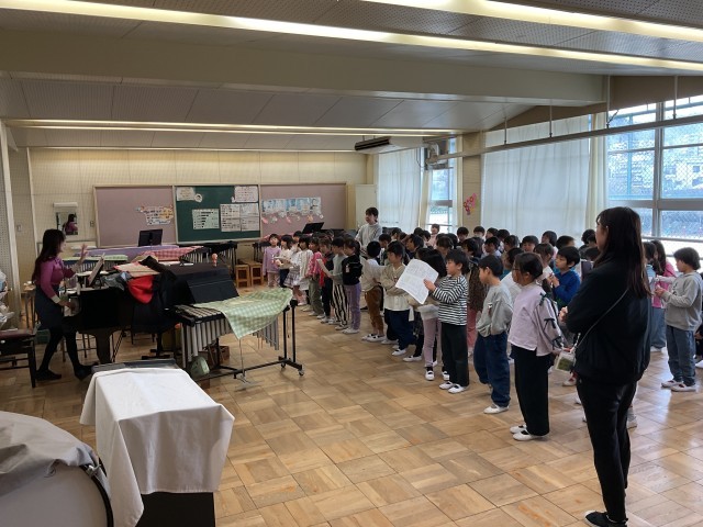 1/28(水)1年生 参観に向けて音楽室で合同練習