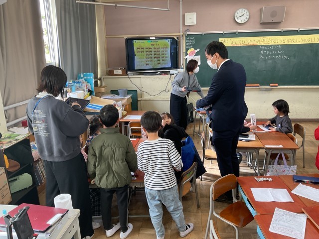 1年生以外は4時間授業で下校し、5時間目に1年生2クラスで研究授業を行いました。