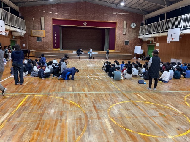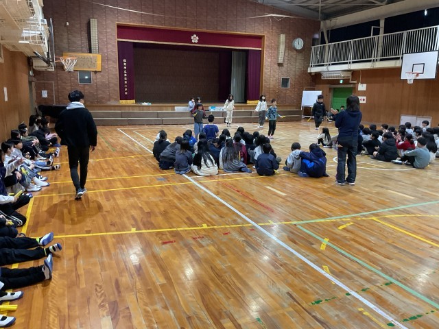 これまで各クラスで取り組んできたリズム縄跳びを、体育館で学年合同で披露し合いました。来週の参観日にも保護者の方々にご覧いただく予定です。ラストスパート頑張りましょう!
