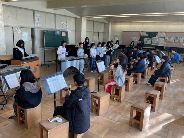 様々な楽器を使って、鉄腕アトムの曲を合奏しました。気分が高まるような曲で、まだまだ練習の段階のようですが上手に奏でてみんなでリズムを合わせながら合奏することができていましたね。