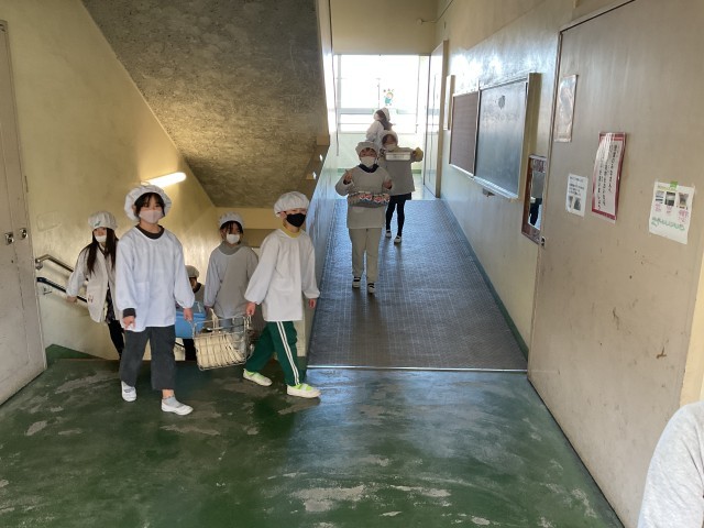 2/17(火)おいしい給食 給食当番の様子 公開日 2026/02/17 更新日 2026/02/17 おいしい給食 2階渡り廊下の様子です。各クラスの給食当番が一気に給食を取りに行きます。高学年が道を譲ったり、階段では上りのクラスを優先したりして安全に取りに行って帰ってきています。 いいね(0)