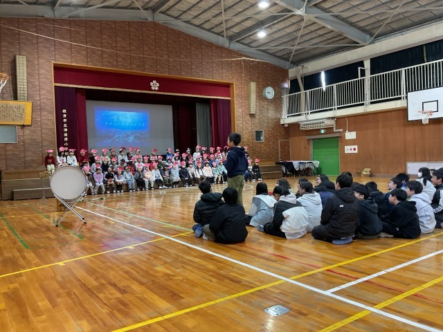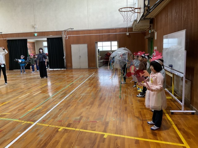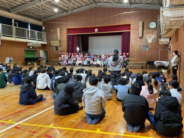 2/19(木)1年生と6年生 スイミーの予行演習に招待 公開日 2026/02/19 更新日 2026/02/19 1年生 今日の参観に向けての練習にお客さんとして6年生を招待していました。歌とセリフだけではなく、小道具?大道具?を使った動きのあるオペレッタでした。立つ座るのタイミングもしっかりと覚えていましたね。最後に6年生から感想をもらっていました。励みになりますね! +3 いいね(0)