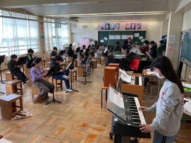 津田南小学校は人数の関係で卒業式に5年生は参加しません。ですので、5年生が演奏した『威風堂々』を録音し、卒業式の入退場時に流します。