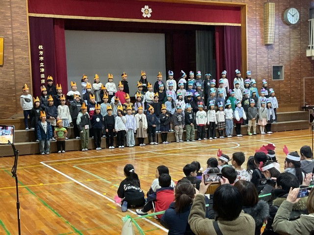 2/19(木)2年生 今年度最後の参観・懇談会 公開日 2026/02/19 更新日 2026/02/19 2年生 1年生と前後半で分かれて発表しました。さすが津田南小学校の1年先輩です。歌の振り付け、バッチリ揃っています!そして、違う歌声の重なりがとてもおもしろい音楽劇でした。 いいね(0)