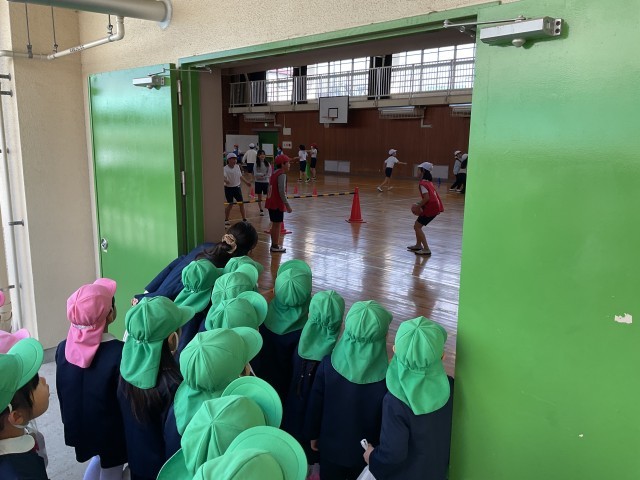 春日東野幼稚園の4クラス(ばら、ゆり、ふじ、さくら)が津田南小学校の様子を見学にきました。